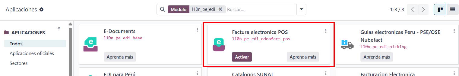 - Busca “l10n_pe_edi_odoofact_pos”.