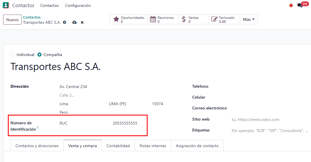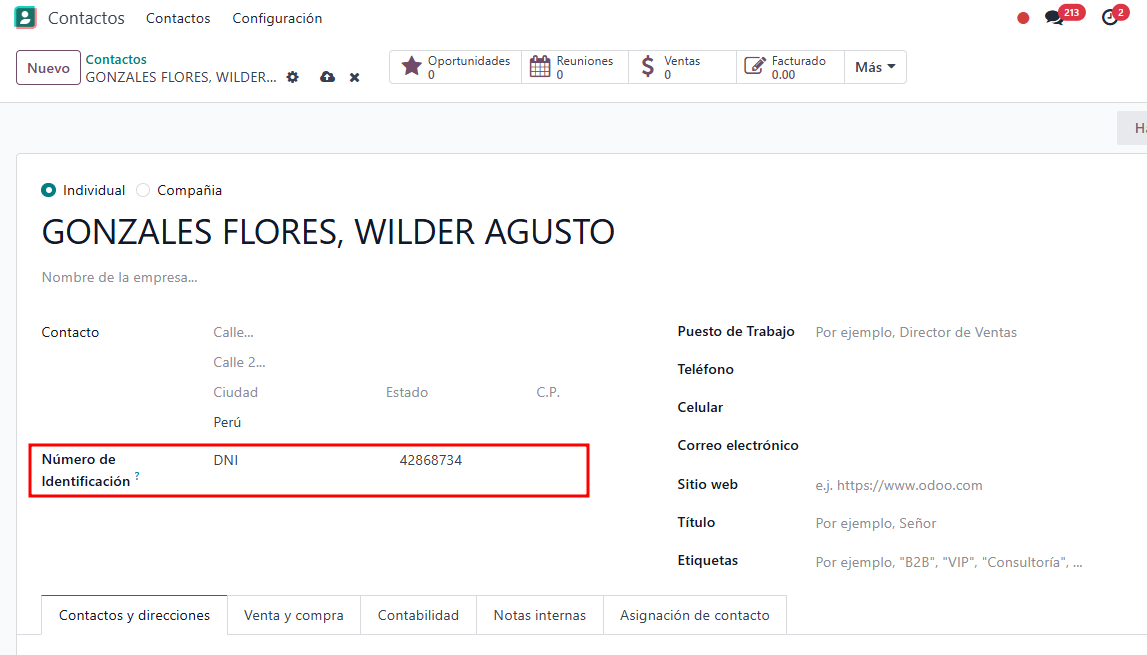 Debemos crear un CONTACTO con sus datos rellenados correctamente