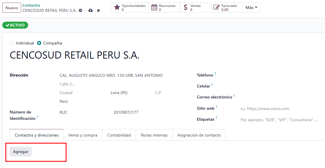 Si nuestra compañía cuenta con 2 o más almacenes, tendremos que crear un CONTACTO por cada Almacén.